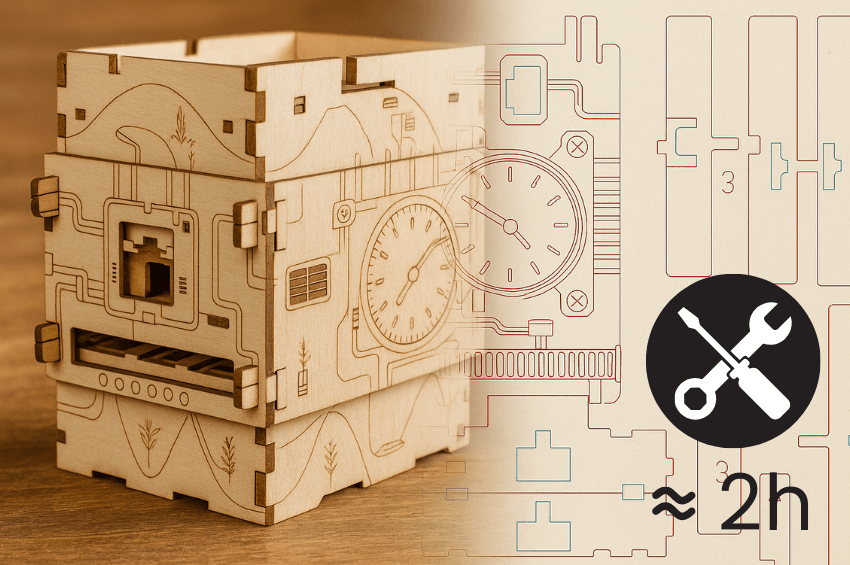 Bevor du in dieses Escape Game eintauchst, erschaffst du die Box selbst – ein echtes Hands-on-Intro in den Fall. Aus präzise vorgefrästen HDF-Teilen setzt du in etwa zwei Stunden die Escape Box zusammen, die später die entscheidenden Hinweise verbirgt. Kein trockenes Basteln, sondern ein fokussierter DIY-Flow, bei dem du spürst, wie sich Schritt für Schritt etwas Komplexes, Geheimnisvolles vor dir formt.