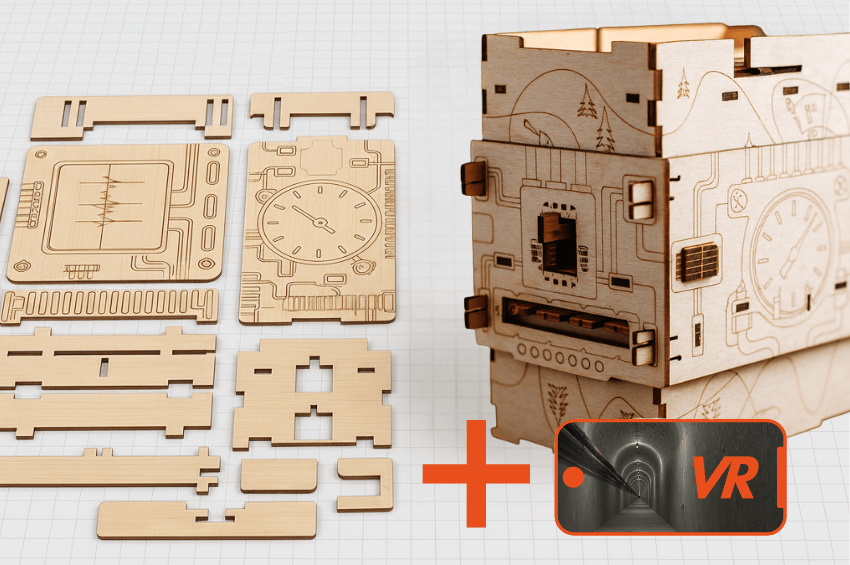 Bundle: Bausatz Escape Box „Der Patient“ inkl. VR-Brille.